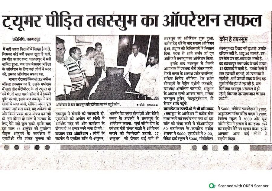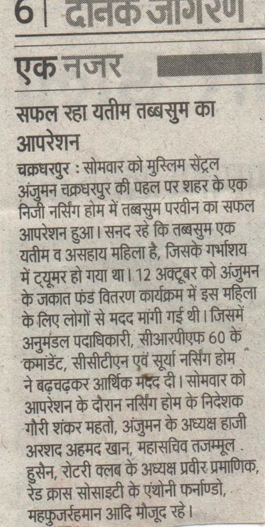 Successful operation of Helpless Tabasum by lead of Muslim Central Anjuman.