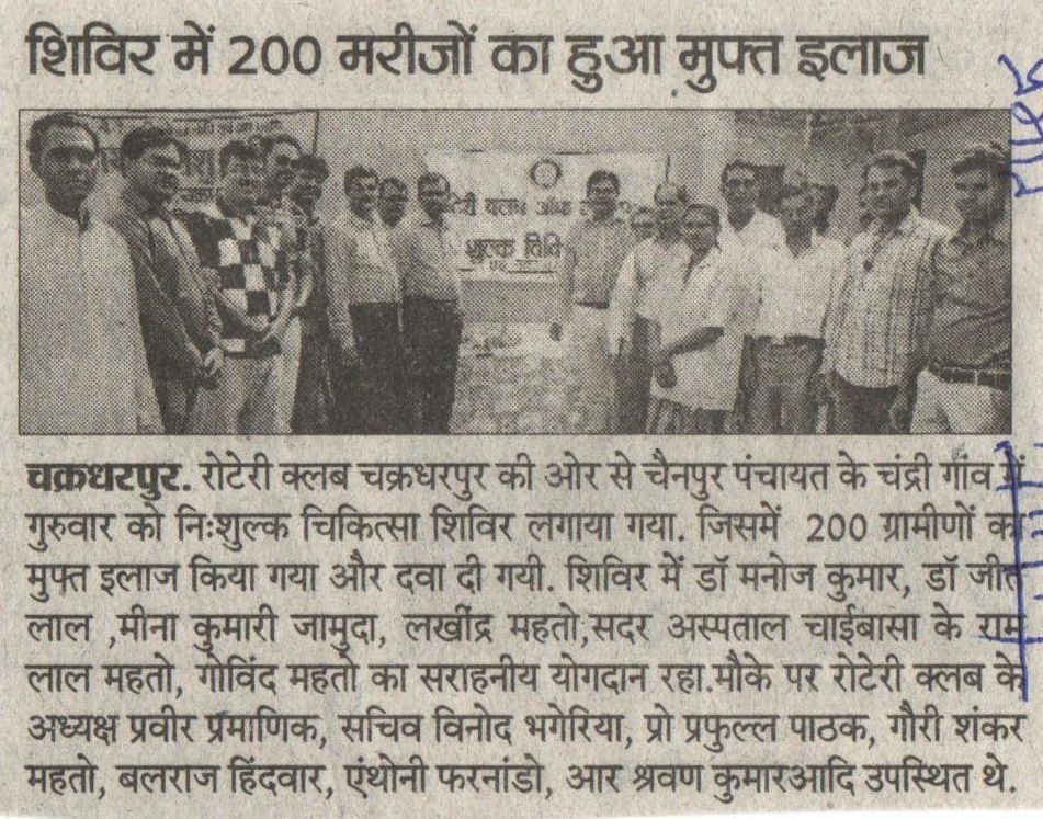 Free healthcamp to 200 patient given with partnership with Rotary Club Chakradharpur.